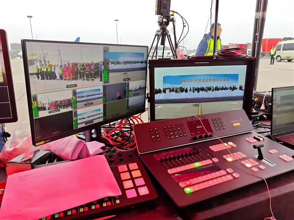 在近日举办的国内某机场2025年度应急救援综合演练中,导播画面实时呈现着多个救援点的现场画面——从跑道事故模拟到航站楼紧急疏散,从救援车辆机动到医疗急救处置,每一个关键指令都依赖于清晰、稳定、无延迟的视频回传。