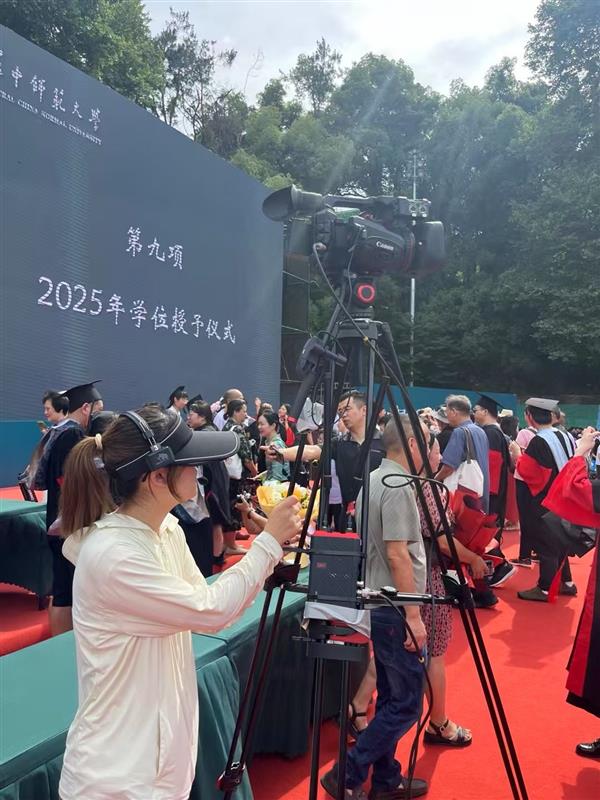 人群中,摄像机捕捉到的毕业生灿烂笑脸、与师长深情拥抱的瞬间、拨穗礼成的庄重一刻……所有动人画面,无延迟、无卡顿地实时呈现;